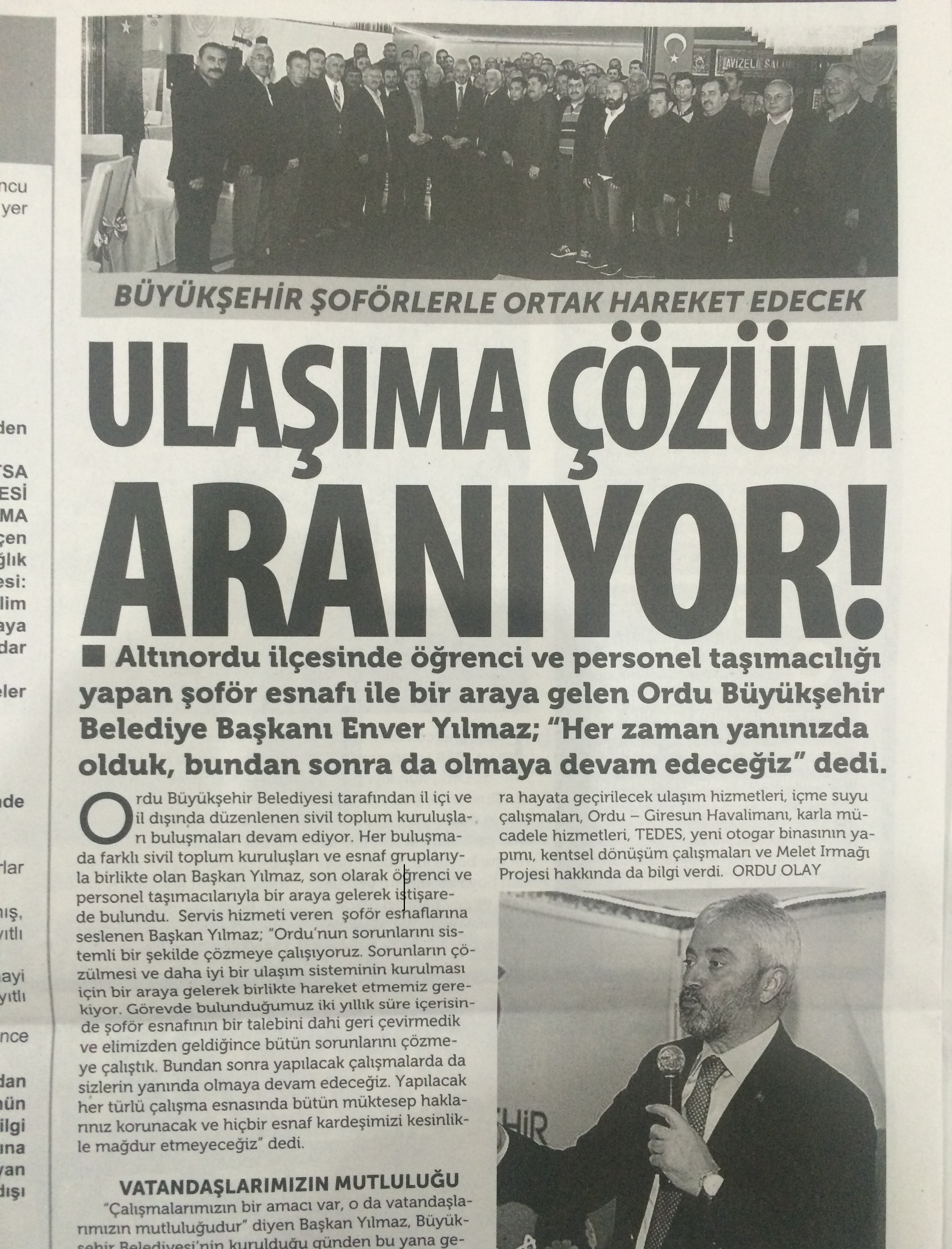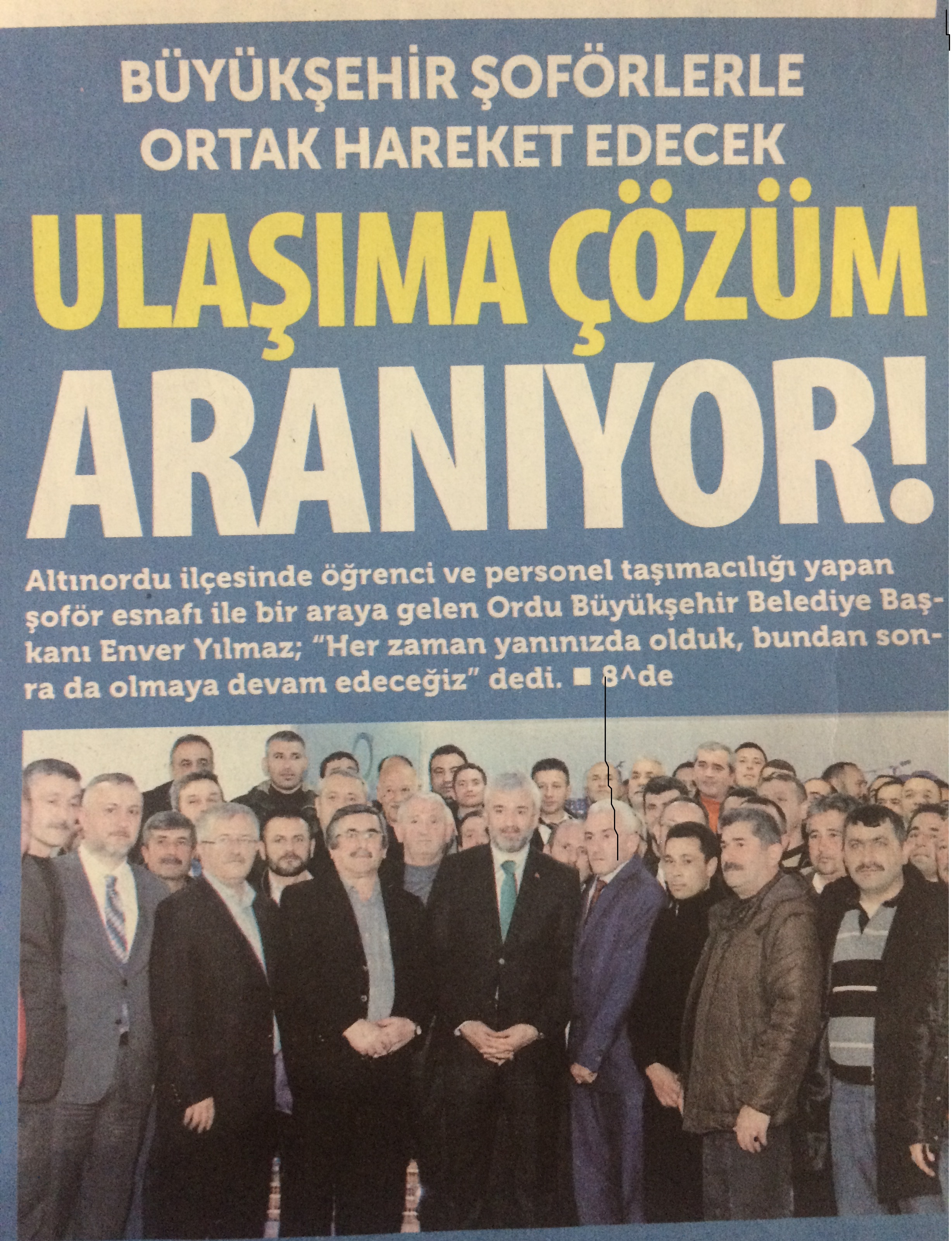 Altınordu ilçesinde öğrenci ve personel taşımacılığı yapan şoför esnafı ile büyükşehir belediye başkanımız bir araya geldi. İlgili buluşmamız yerel gazetelerde kendine yer buldu.